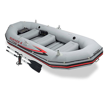 این محصول یک قایق بادی حرفه ای به شمار می رود. کف قایق بادی مارینر از فایبرگلاس بوده و در مقابل سایش و فرسایش مقاومت خوبی دارد. بر روی این محصول می توانید به راحتی بایستید چرا که کف فایبرگلاسی تعادل قایق را حفظ می کند این محصول دارای 3 صندلی می باشد که آسایش بیشتری را هنگام قایقرانی برای شما مهیا می سازد. همچنین دارای یک جفت پارو آلومینیومی است که به صورت چند تکه طراحی گشته اند از این رو حمل و نقل آن ها با سهولت انجام می گیرد. جای پارو ها از نوع چرخشی دنده ای است که سهولت در پاروزنی را در پی خواهد داشت. افزون بر این می توان موتورهای برقی و بنزینی تا 6/3 اسب بخار را به این قایق بادی متصل کرد و قایقرانی با سرعت بالا را تجربه نمود. هرچند که در ساخت بدنه این محصول از pvc سه لایه الیاف دار بهره گرفته شده است که دارای استحکام و مقاومت بالایی در برابر ساییدگی است. اما شرکت اینتکس در جعبه بسته بندی این محصول برچسب تعمیرات نیز قرار داده است که در صورت آسیب دیدن قایق می توانید از آن استفاده نمایید این محصول دارای کیف باتری موتور نیز می باشد.